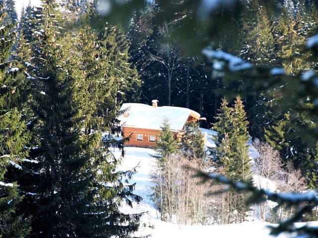 Die Haberlhütte liegt idyllisch auf einer Waldlichtung, eingebettet in die verschneite Bergwelt des Skicircus Saalbach-Hinterglemm-Leogang-Fieberbrunn. Ungefähr 100 Höhenmeter unterhalb der Mittelstation der Streubödenbahn thront sie mitten im Geschehen und doch abseits des Trubels, sodass du die Ruhe der Natur genießen kannst.
